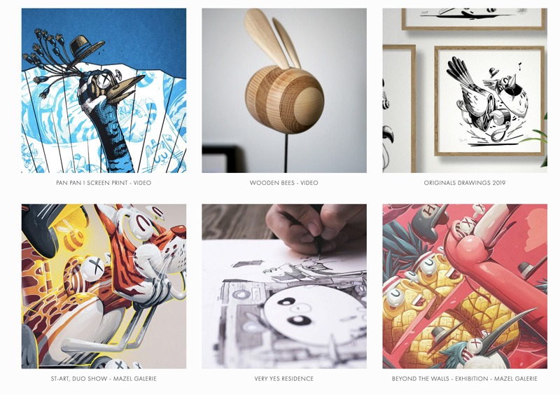 J’ai participé à la 2e édition de Colors, le festival d’art urbain contemporain de Strasbourg en tant que « peintre ». Mon pote Stom500, le DA et co-fondateur du festival, m’a lancé ce challenge de peindre un grand mur à la bombe. C’était une première pour moi et c’est clairement un super souvenir. J’ai aussi participé à une expo collective et un duo show dans une galerie d’art il y a quelques années, c’était une chouette expérience, je ne me suis pas positionné en tant qu’artiste mais j’ai réfléchi en tant que graphiste à la manière de proposer quelque chose de différent sans me prendre pour un autre.