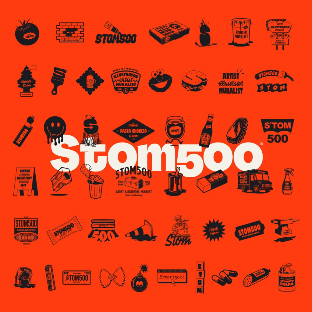 • L’identité visuelle de Stom500 car c’est un artiste (et ami) ultra talentueux, on se connait depuis des années, on échange toujours beaucoup sur nos boulots respectifs, on collabore sur pas mal de projets ensemble et là il m’a laissé une sorte de carte blanche. Il voulait en gros un logo signature, donc un truc plutôt simple et en même temps je devais trouver un style qui ne vienne pas parasiter le sien. Donc que ce soit en typographie ou en illustrations, rien ne devait être trop « manuel ». J’ai donc pris le parti d’avoir d’un côté une typo style grotesque ultra contemporaine et d’un autre une gamme de 50 petits logos pour qu’il puisse s’amuser et composer avec. Et c’est rempli d’ester eggs, de souvenirs et d’anecdotes.