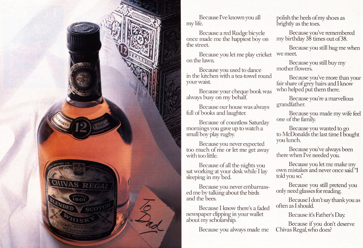 Parce que c’était une simple annonce pour la fête des pères et que c’est devenu la meilleure pub pour un whisky.