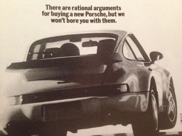 Pas facile à écrire cette accroche. Dire le nom du produit, expliciter le « plus produit » (le luxe), énoncer ce qu’engendre le plus produit sur le consommateur (l’impression d’être riche donc d’avoir un chauffeur) et terminer sur une blague irrévérencieuse. Le tout en un direct au menton. Les parenthèses font un peu vieille publicité aujourd’hui, mais je trouve encore moderne la façon « jetée », sèche, dont sont écrits les mots. Sans fioritures. Pas de conditionnel, du présent. Pas de tentative de rendre l’humour moins caustique, plus « consumer friendly ». L’idée rédigée brutalement. Mais avec classe.