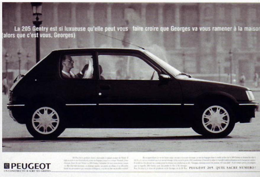 Pas facile à écrire cette accroche. Dire le nom du produit, expliciter le « plus produit » (le luxe), énoncer ce qu’engendre le plus produit sur le consommateur (l’impression d’être riche donc d’avoir un chauffeur) et terminer sur une blague irrévérencieuse. Le tout en un direct au menton. Les parenthèses font un peu vieille publicité aujourd’hui, mais je trouve encore moderne la façon « jetée », sèche, dont sont écrits les mots. Sans fioritures. Pas de conditionnel, du présent. Pas de tentative de rendre l’humour moins caustique, plus « consumer friendly ». L’idée rédigée brutalement. Mais avec classe.