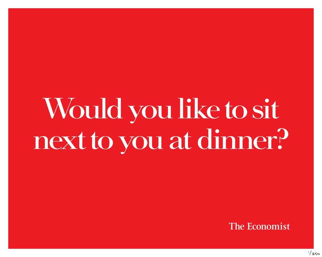Les grandes annonces ne se nourrissent pas toujours d’un insight fort, elles peuvent reposer sur la maestria du rédacteur, la beauté d’une image ou une blague à ce point hilarante qu’elle emporte le morceau. Ce n’est pas le cas ici. L’intérêt de la campagne réside avant tout dans l’approche intelligente du sujet. Comme dans le poster The Economist qui demandait au lecteur : « Would you like to sit next to you at dinner? », chaque annonce fonctionne sur le mode de l’interpellation et pousse à l’introspection, à s’interroger sur sa propre existence, à remettre en question son quotidien. Car chacune nourrit l’idée, ô combien ironique, qu’un simple objet, aussi anodin soit-il, peut avoir vécu davantage que vous. Les accroches défient le lecteur et l’invitent, par un récit bien mené, à suivre un tel exemple… En entamant un long voyage en SUV. CQFD.